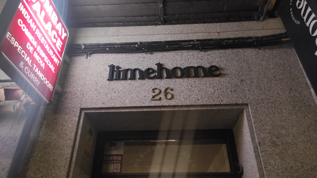 Cartel de Limehome sobre la entrada de Ave María 26, en una imagen de diciembre de 2022 | FOTO: XLAVAPIES.COM