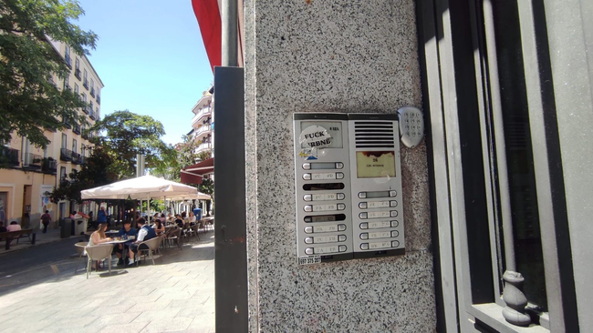 Telefonillo de Ave María 26, con dispositivo electrónica de apertura de la puerta mediante código | FOTO: XLAVAPIES.COM