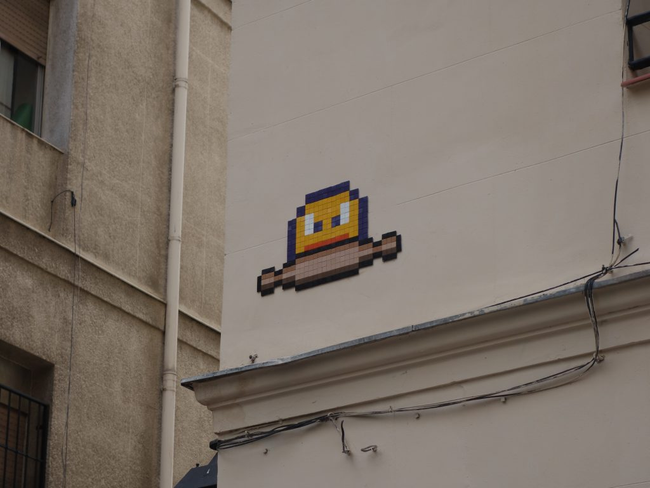 Por Basket of Nean normalmente habla su trabajo, que es donde este artista urbano quiere que se ponga el foco. Tanto es así que de él no se conoce ni su verdadero nombre ni su rostro ni apenas datos biográficos, más allá de que sus orígenes hay que buscarlos en Alcorcón. Sin embargo, y coincidiendo con la primera exposición individual de sus obras –‘Level 1. Player: Nean‘-, que se puede visitar estos días en la galería de arte La PanArtería (Mesón de Paredes 72), Nean ha accedido a hablar con xLavapiés, permitiéndonos acercarnos un poco al responsable de todas esas coloridas intervenciones de ‘pixel art’ que salpican el centro de Madrid colocadas casi siempre en esquinas, junto al nombre de las vías, al alcance de los ojos de quienes caminan atentos a lo que ofrece la ciudad.