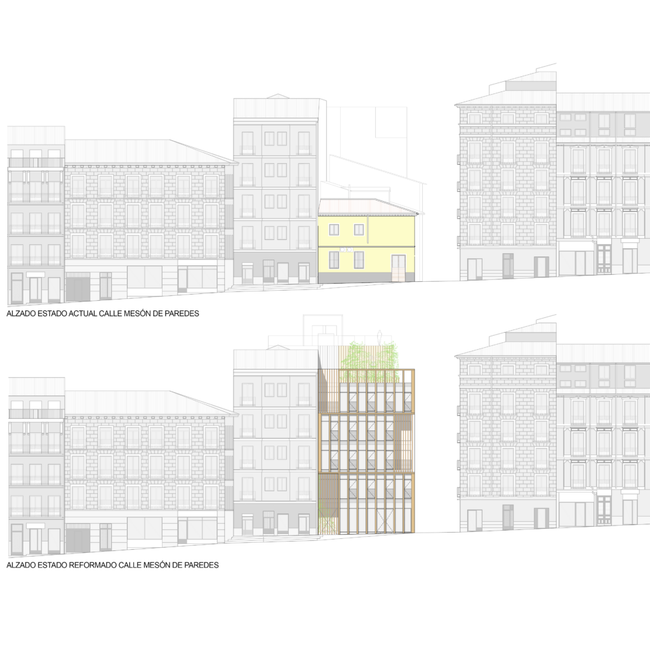 Alzado del proyecto, con el antes y el después | Imagen: Urbex Arquitectura