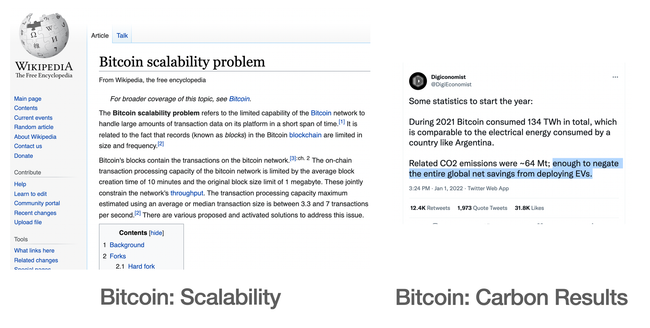 The bitcoin network has terrible scalability despite the enormous carbot footprint