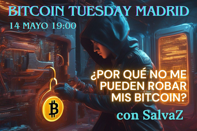 Cuándo Tuesday, June 17, 2025 7:30 PM to 9:00 PM CET Martes, 17 de junio de 2025 de 19:30h a 21h CET Temática El próximo martes tendremos una charla para aprender sobre Criptografía y Bitcoin con SalvaZ. ¡No faltes, te esperamos a esta gran charla! Lugar de Encuentro Hosted by: Meat Madrid en C/ Santa Teresa, 4. Madrid, 28004 (Metro Alonso Martinez) Únete a la Comunidad Únete a nuestro grupo de Telegram! Síguenos en Web, Twitter & nostr! Suscríbete a nuestro canal de Youtube!