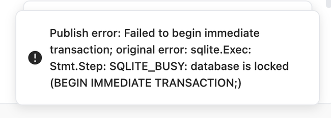 This error message appeared multiple times when I tried to publish a doc just now