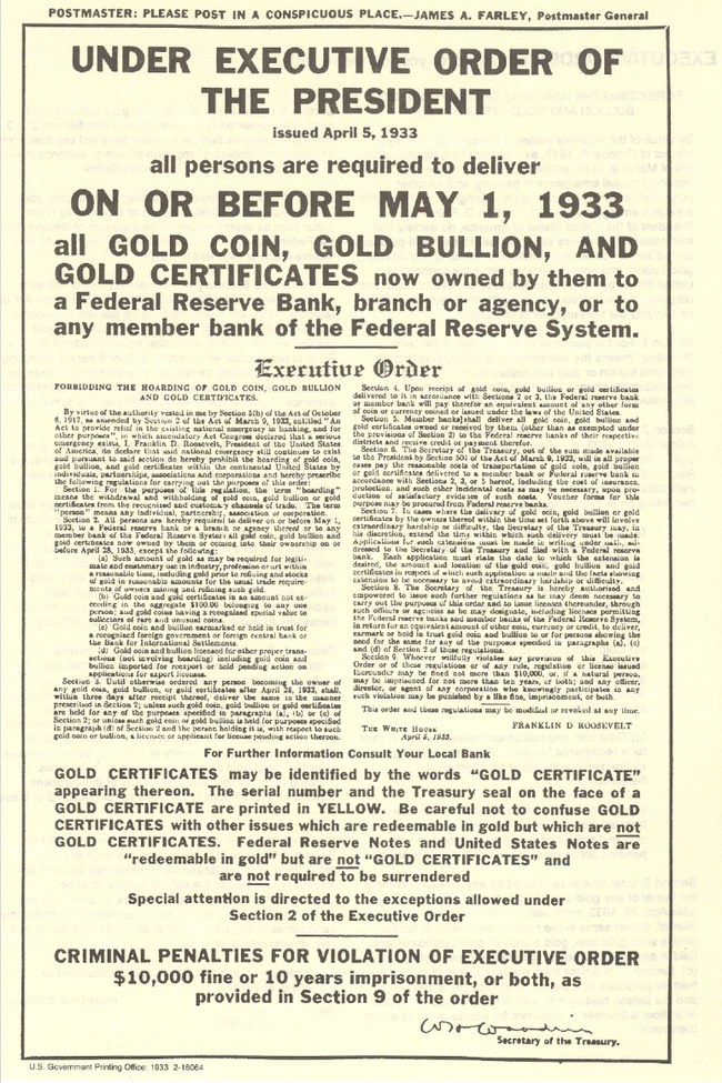 Orden ejecutiva 6102 de 1933 traducida al español: Versión Audio