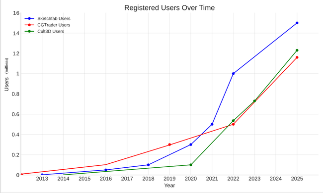 Meanwhile, commercial 3D marketplaces that emerged in the 2010s capitalized on this opportunity, successfully growing their content libraries and attracting millions of users.