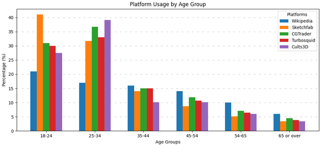 Creators and users aged 18–34, a demographic underrepresented in Wikipedia’s editor base but dominant in 3D platforms.