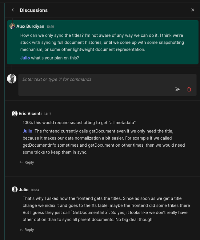 Why do we order replies by most recent first? In this case the reply is above the message its trying to answer, but should be below, right? Unless Eric Vicenti replied to Burdi's comment instead of Julio's. but the text suggests otherwise...