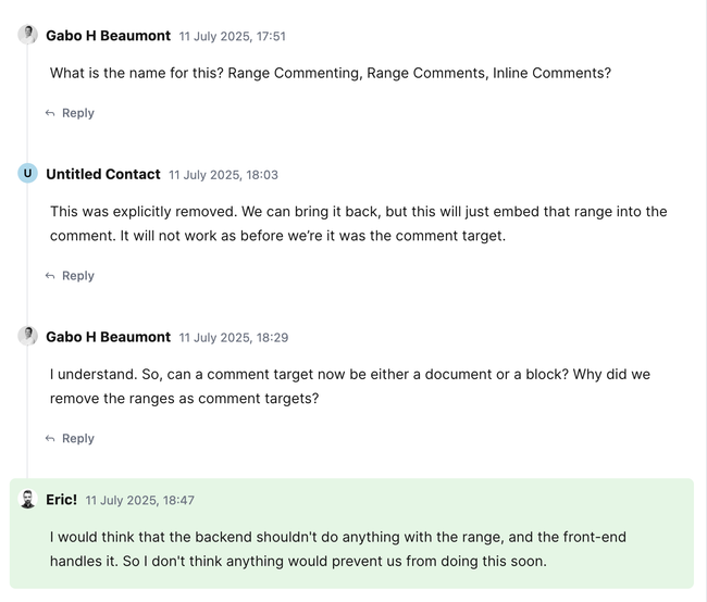 In this discussion: I miss the comment icon, Eric Vicenti says that the backend shouldn't do anything with the range. Could you expand please? Thanks! Alex Burdiyan