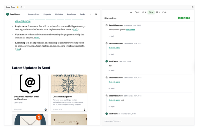 Think of it like Twitter’s “Mentions,” but applied as a dynamic lens over our collaborative site.