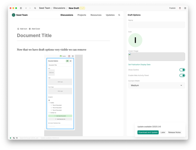 Now that we have very visible draft options, having Add icon and Add cover image very handy on the side panel, we could remove the buttons on top of the Document Title!