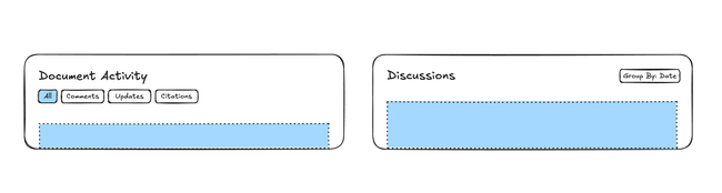 Based on Eric's comment, I realize that making the discussions a "sub-panel" knowing that is one of the most important ones sounds very silly tbh. so I had the idea of actually proposing the opposite: add the group by action to the current discussions panel and remove comments from the Document Activity. This will look like this: