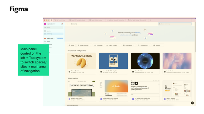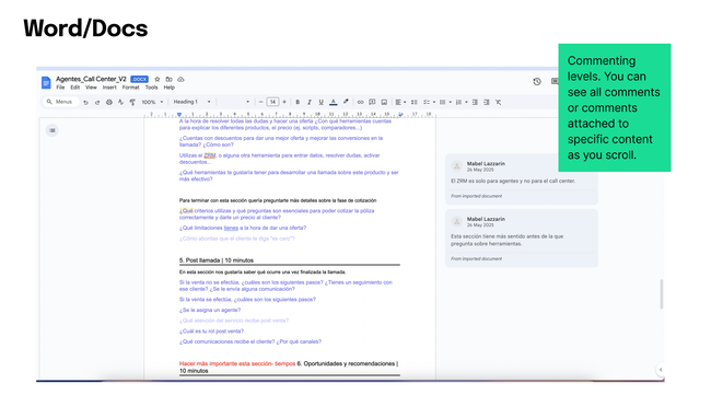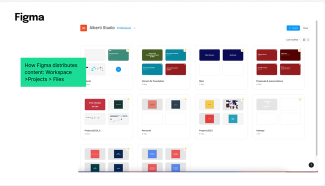 The way content is nested: folders > files > share/comment. My files or shared with me.