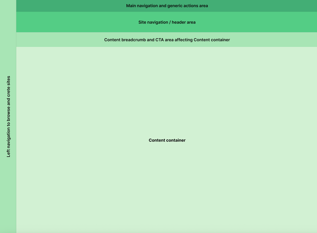 New structure layout with specific areas for each content and actions.