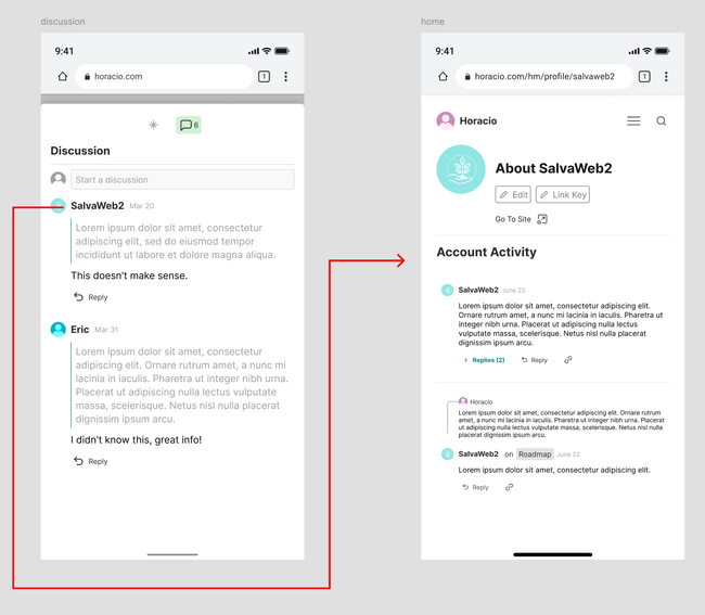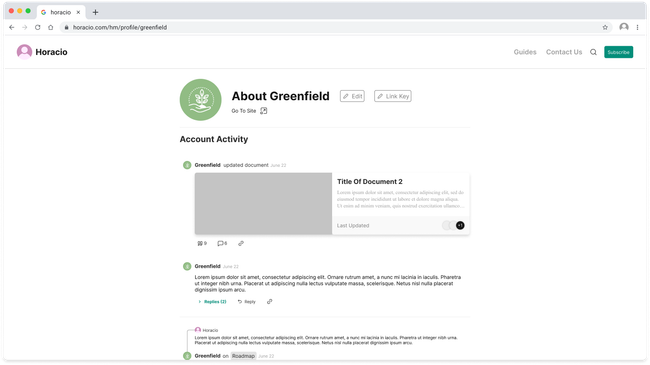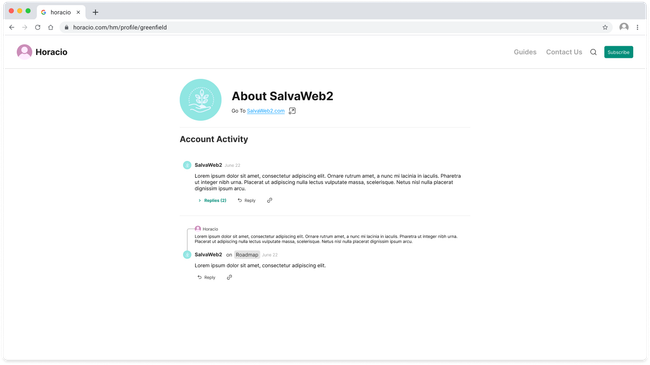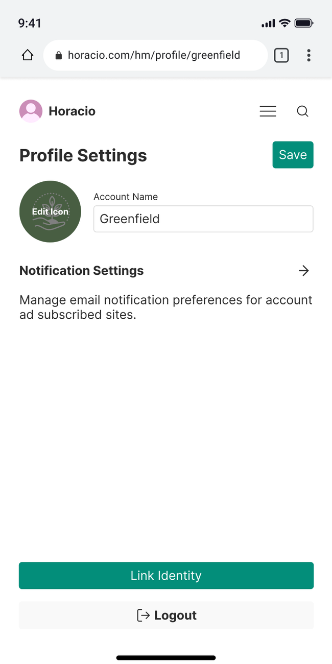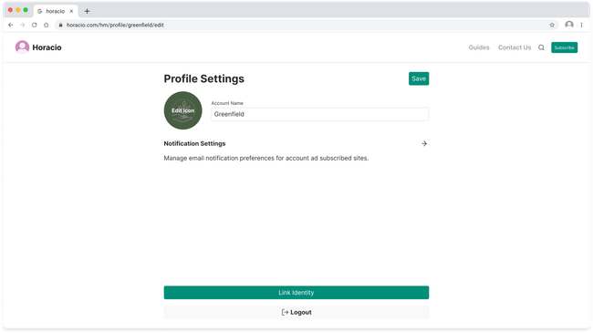 The Profile will display the information of the user in the header and a feed of all their activity happening though out seed hypermedia. They will also see a button to change their settings.