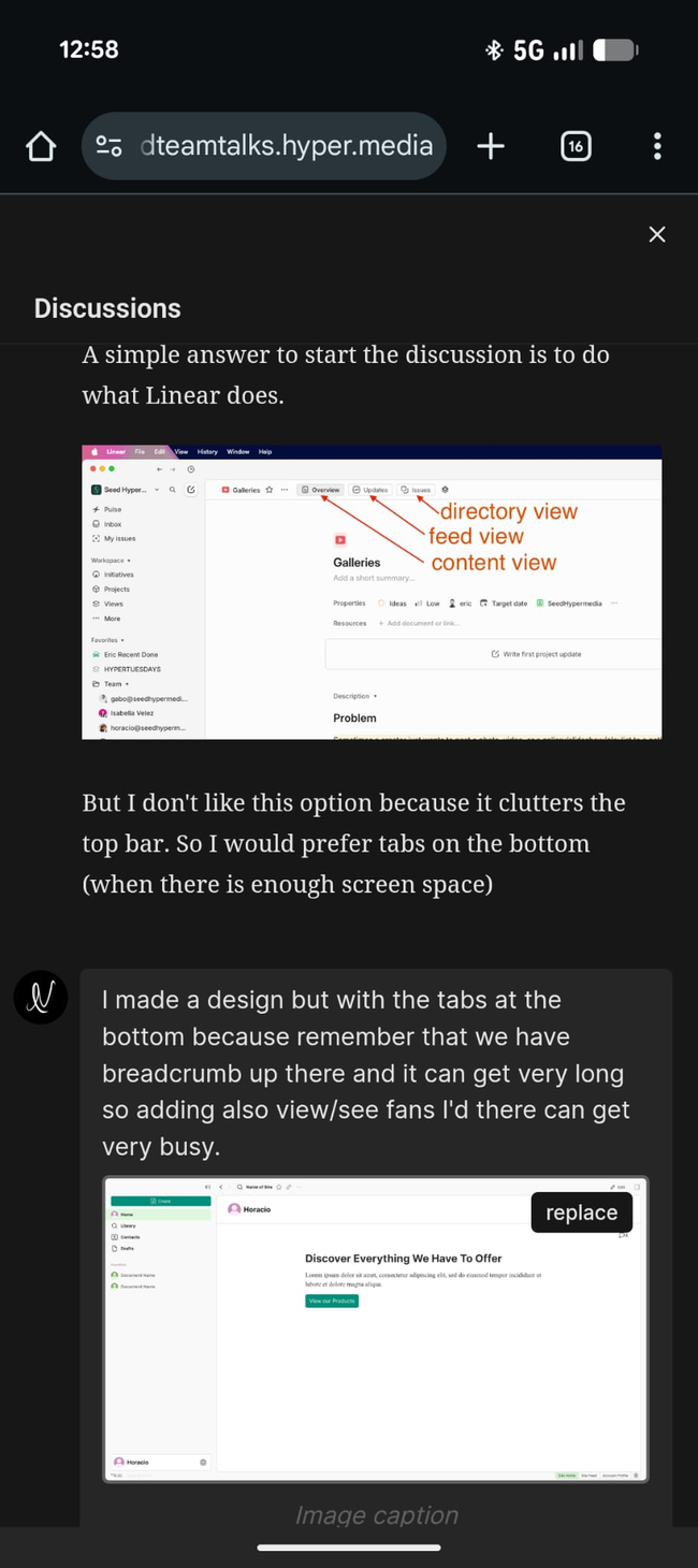 Seed has no immediacy which makes it undesirable for casual conversations. And I think that is why the team is still using Discord (Project: Mentions and Replies grouped by Discussions.)