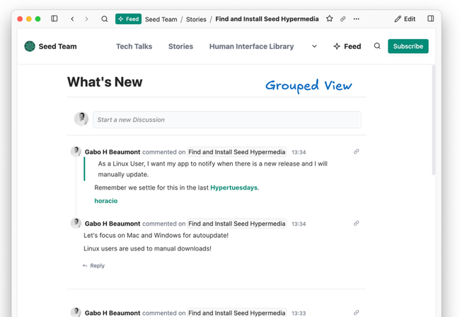 We can have both views: Discussions and Activity Views on the Document Panel, but also on the General Feed Panel.