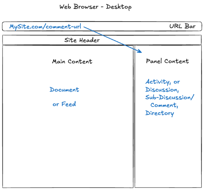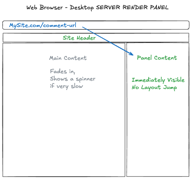 We will be more deliberate about when to use server rendering. This will help draw the user's attention to the content that is being addressed, and the other panel will come in a bit later- it will not be server rendered and will use an async request to load.