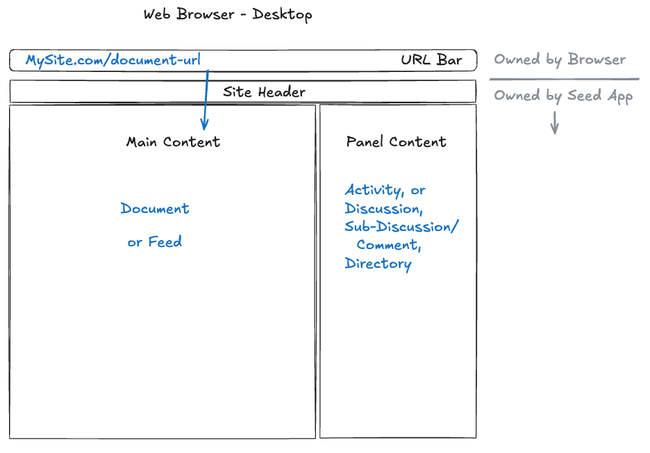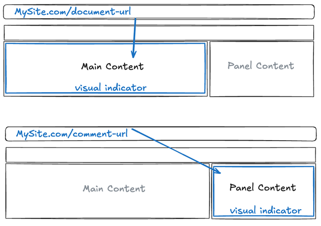 There will be a visual highlight around either the main content or the panel, which matches the URL in the URL bar