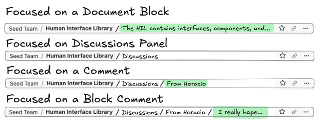 The title bar breadcrumbs in the desktop app should show the full path, including the panel, and selected content in the fragment URL.