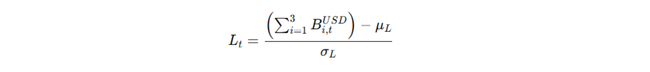 Lt: Z-score del índice de liquidez global.