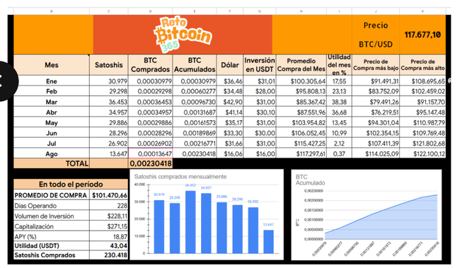 Figura 6. Los resultados de la Figura 6 marcan el inicio para usar las calculadoras, mini retos y otras herramientas del #RetoBitcoin365.
